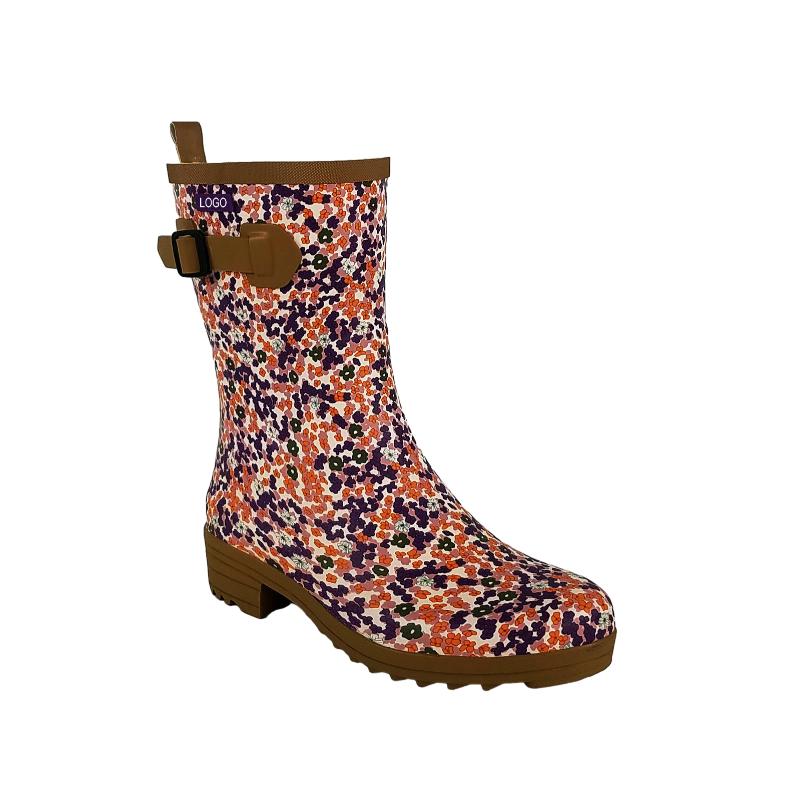 Introducing our latest collection of fashionable ladies' rubber boots with eye-catching prints, designed to keep you stylish and dry no matter the weather. These waterproof boots are the perfect combination of function and fashion, making a statement with their trendy designs while keeping your feet comfortable and protected. With a flattering middle height that offers both support and flexibility, these boots are not only practical but also versatile enough to pair with any outfit. Step out in confidence, rain or shine, with our fashion-forward ladies' rubber boots that seamlessly blend style and functionality to elevate your wardrobe essentials.