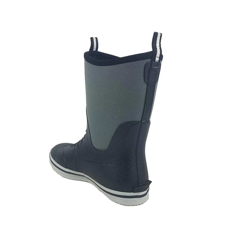 The rubber boots are perfect deck boots to keep you on your feet when it counts. These rubber boots—which we also dubbed some of the best boat shoes—are ankle higher with a full neoprene and rubber upper, and they keep you dry and comfortable. Like other deck boots, they slip on and off easily and can be worn with or without socks.